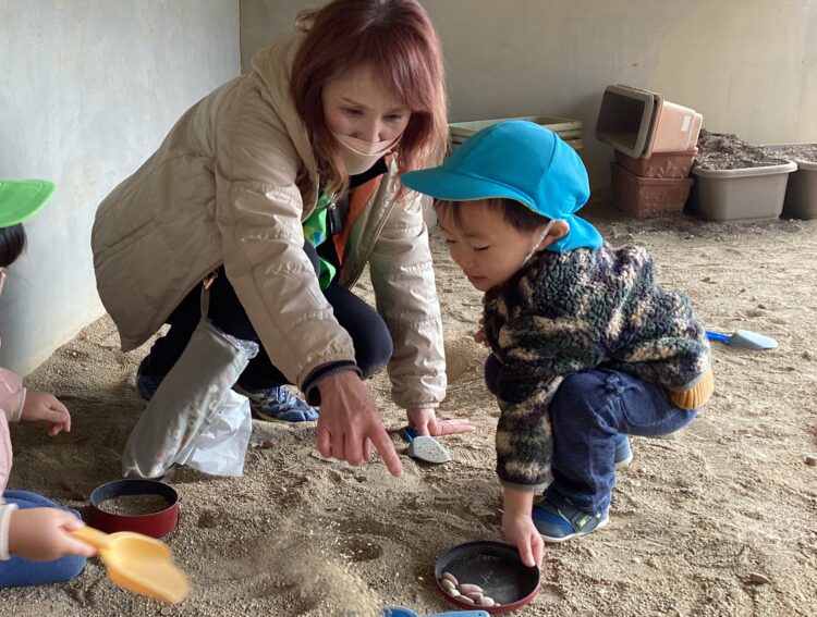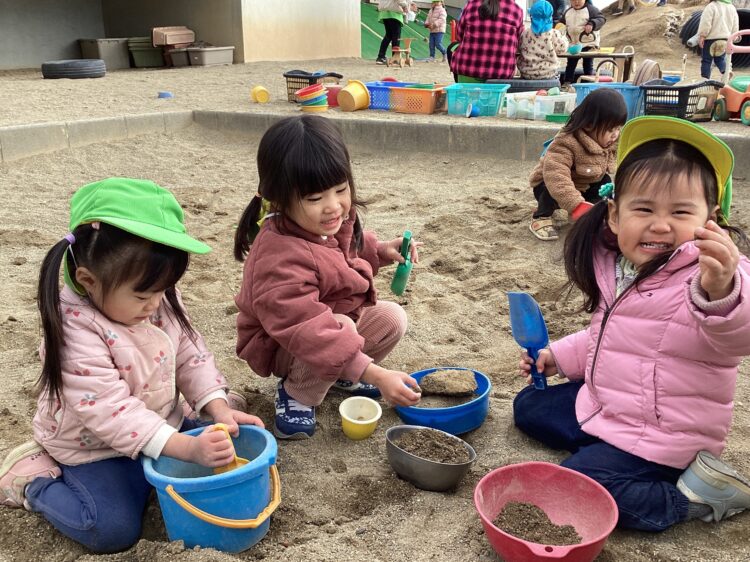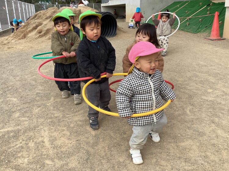 園庭ではお砂遊びやフラフープで遊びました!