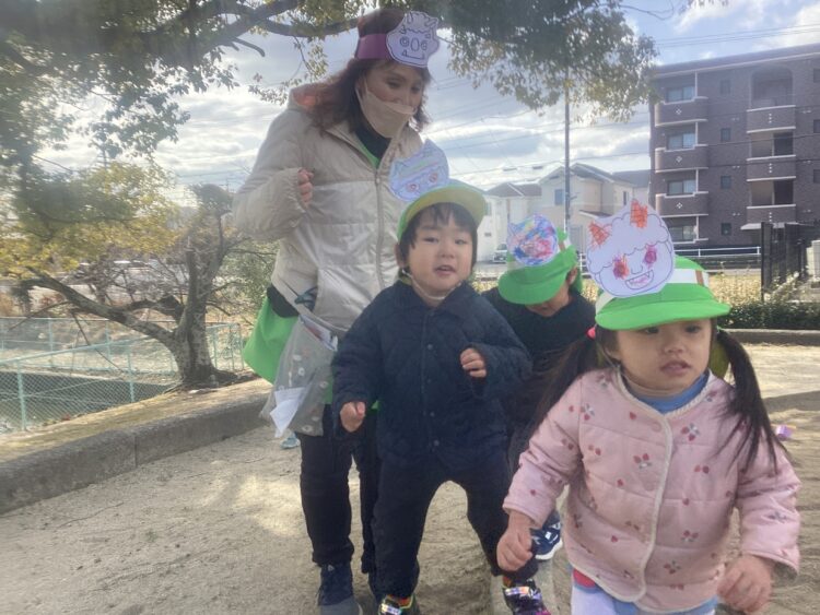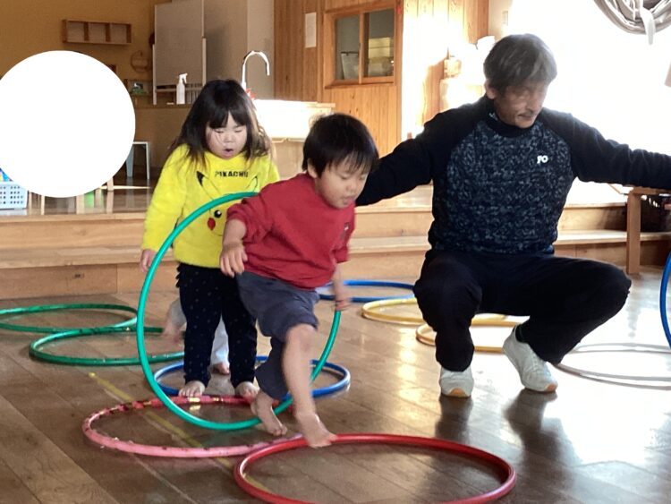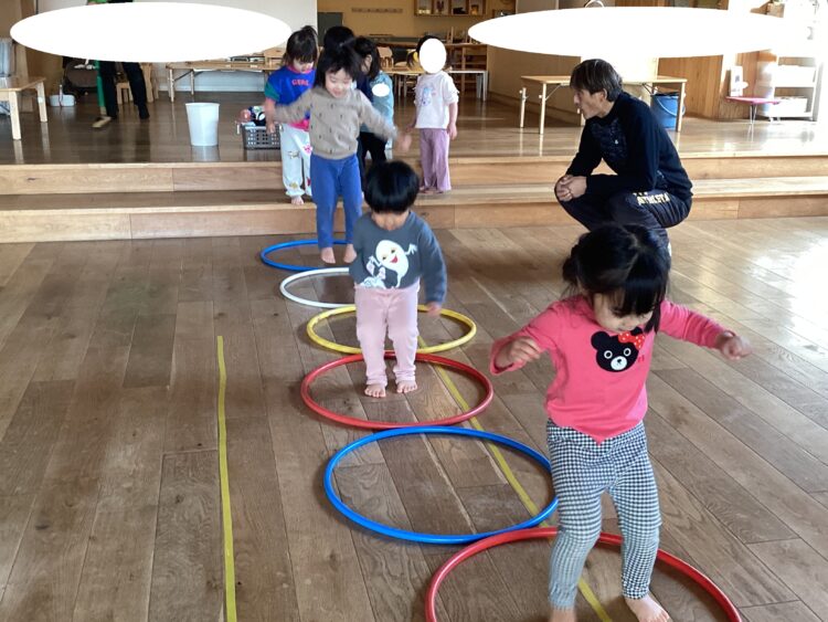 フラフープの中を潜ったり、ジャンプをしたりして楽しみました![]()