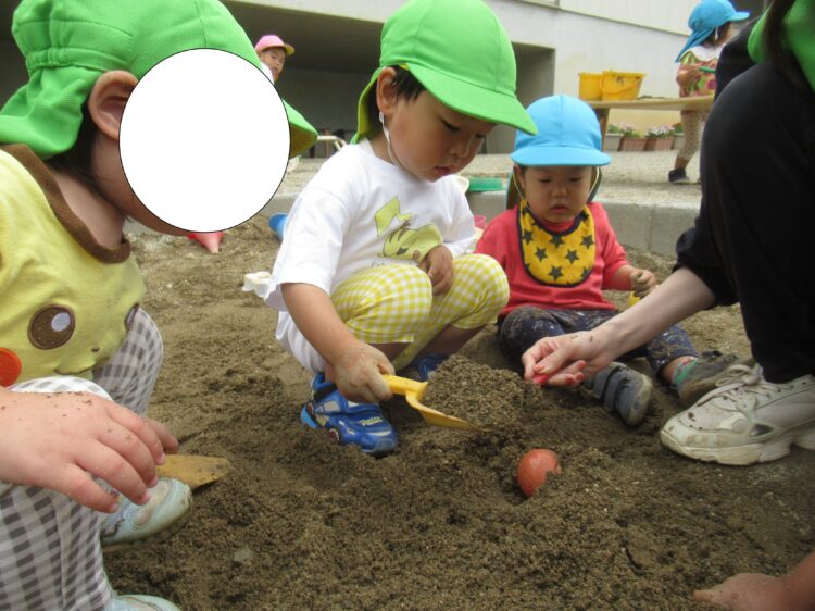 砂を掘り、「先生みてみて~」とお宝を見つけた様です