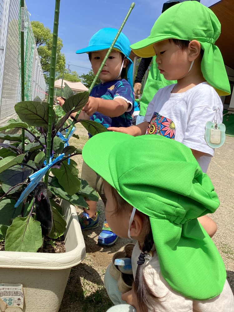 大きくなったナスを見つけて「見て!」と嬉しそうに教えてくれたり、発見を楽しんでいましたよ