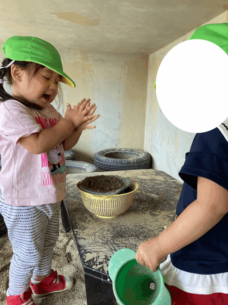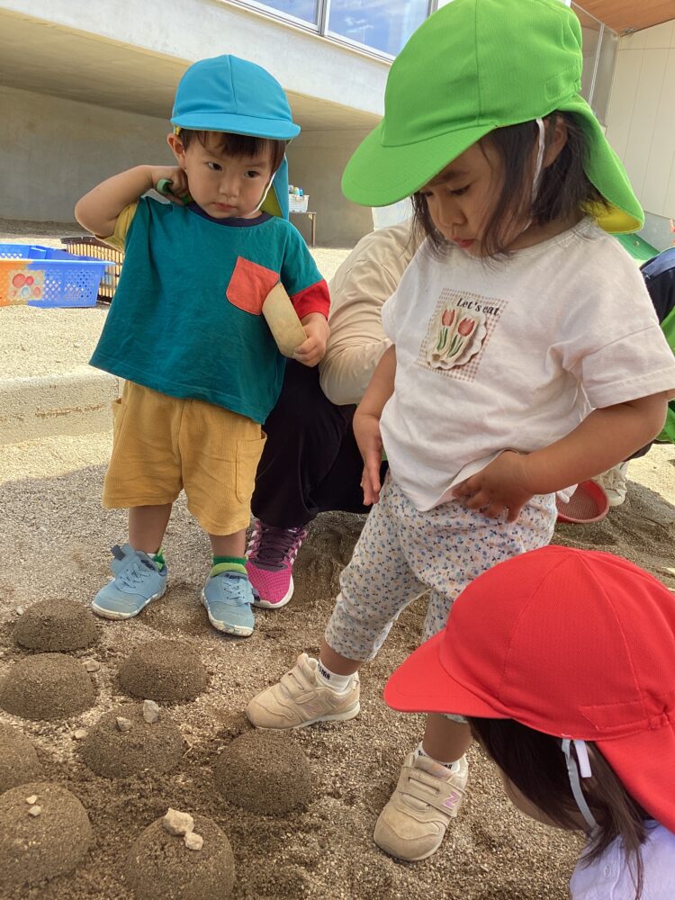 外では砂遊びをしたり、トンネルくぐりをしたりと、それぞれ好きな遊びを見つけて元気いっぱい遊んでいましたよ