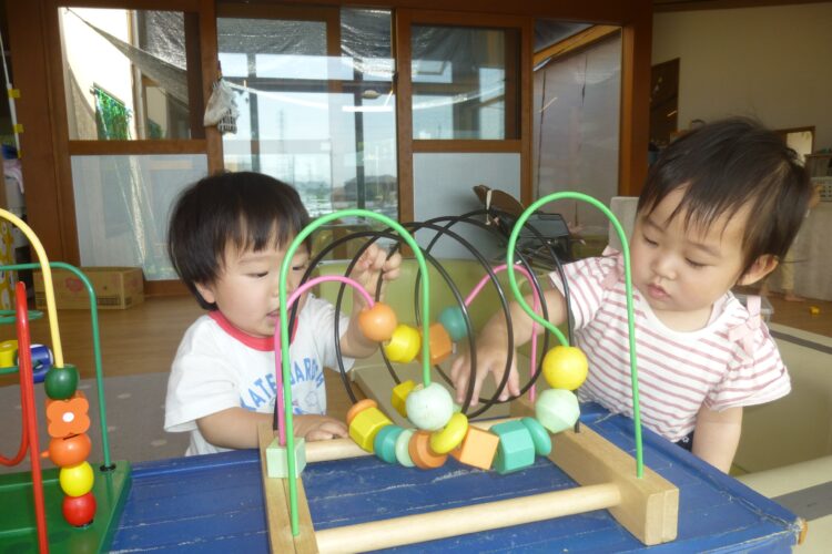 ルーピングの玩具で指先を使って遊ぶお友だち