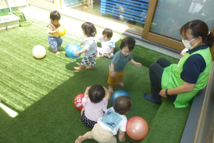 お友だちが遊ぶ様子を見て「ぼくも!わたしも!」と言わんばかりに真似っこをして楽しんでいます。