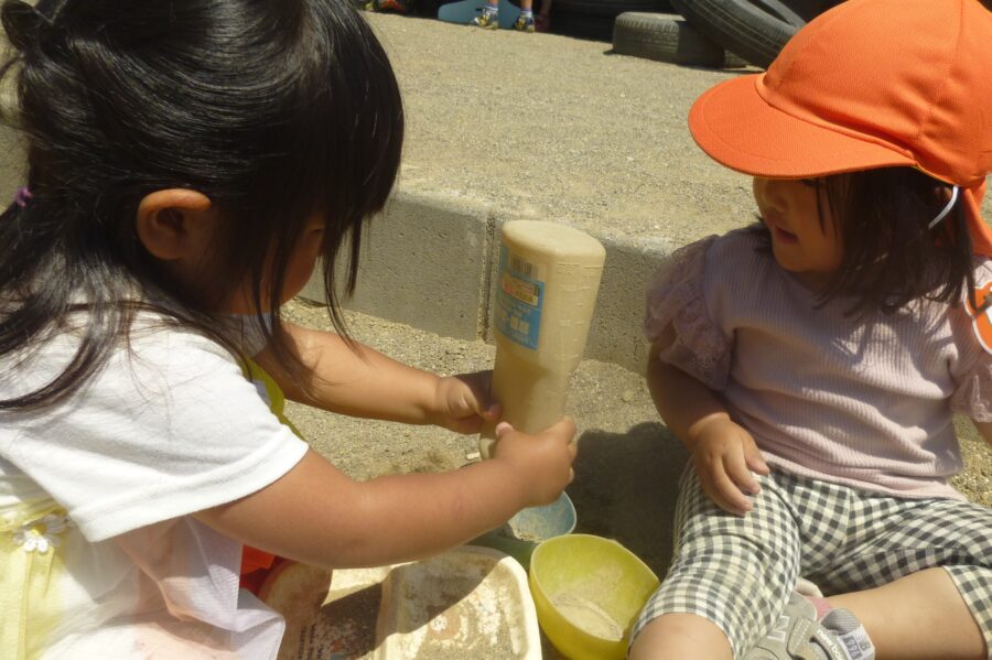 お砂場ではお友だちとお話しをしながら作ります