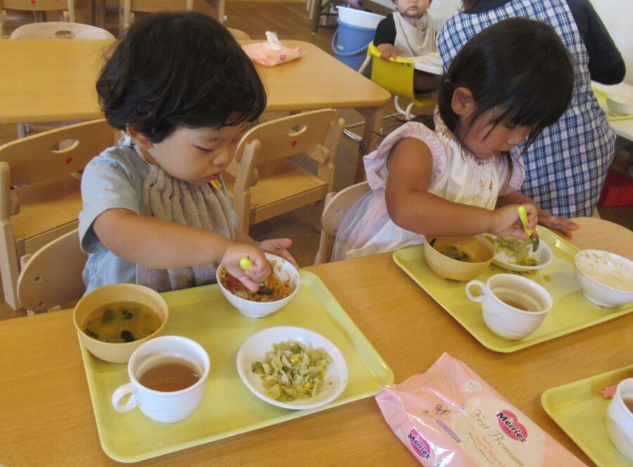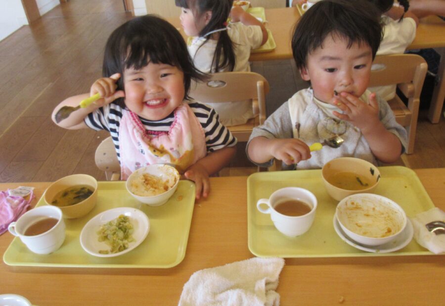 いつもと違うカレーでしたが「おいしい!」とたくさん食べていましたよ![]()