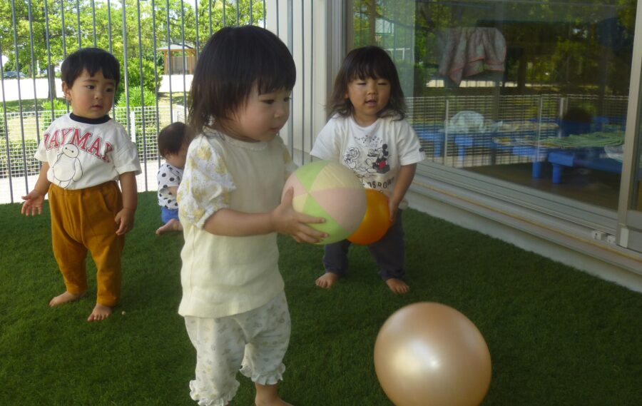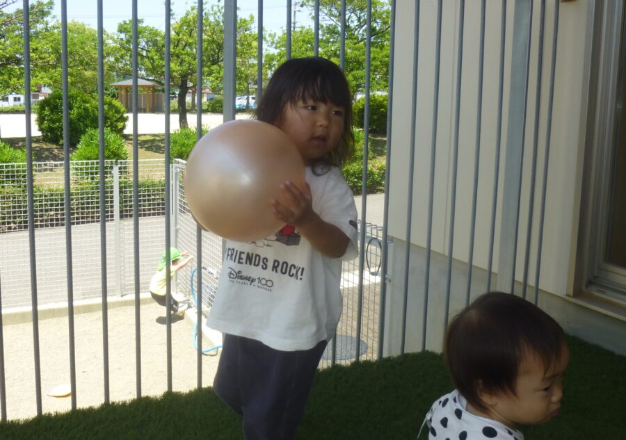 ベランダではボール遊びをしました![]()