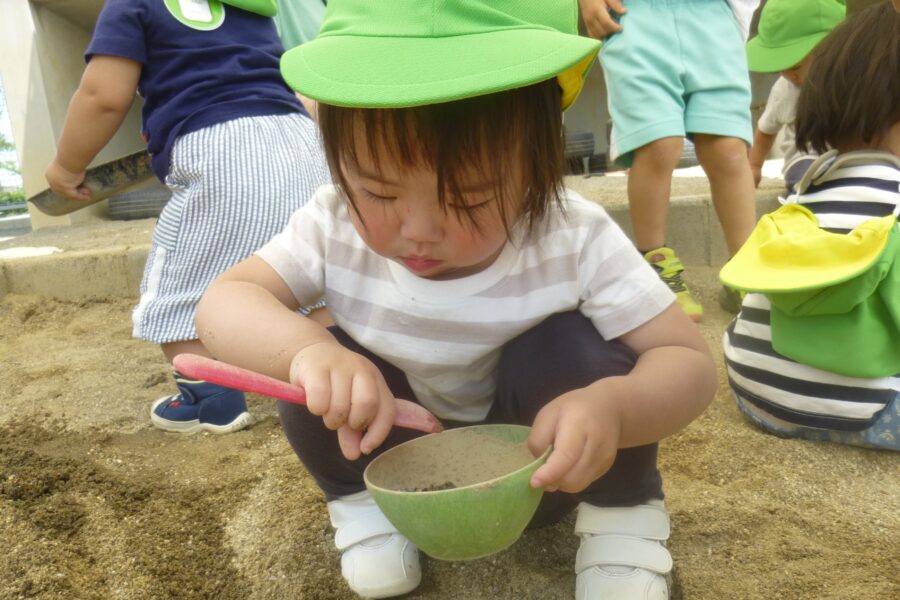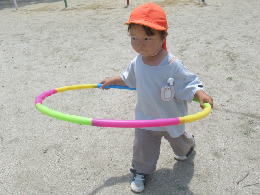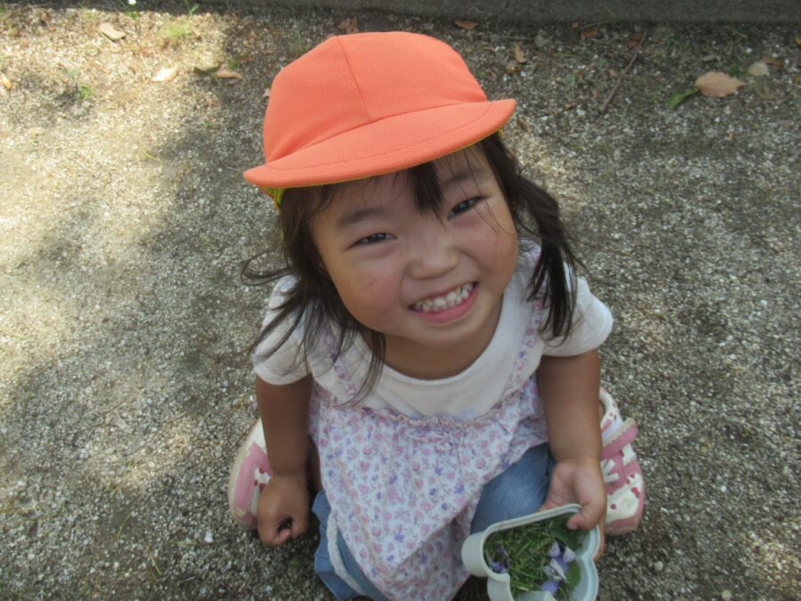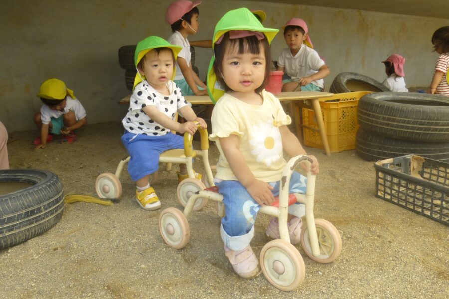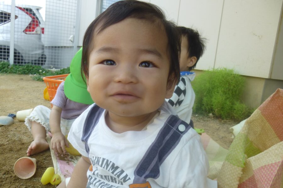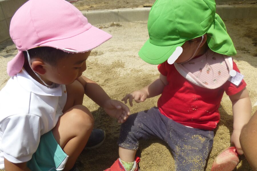 園庭でもしゃぼん玉やお砂遊びやコンビカーに乗って遊びました![]()