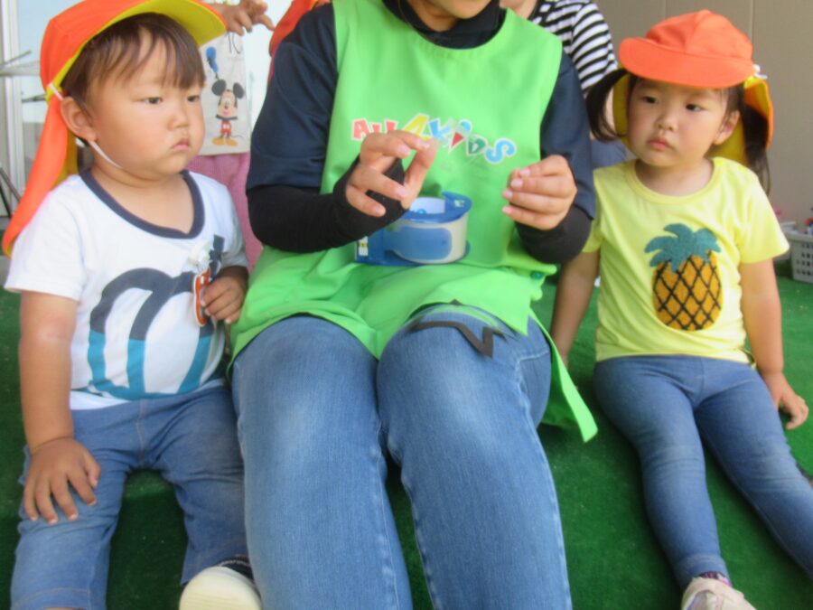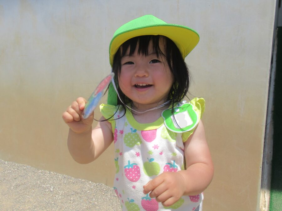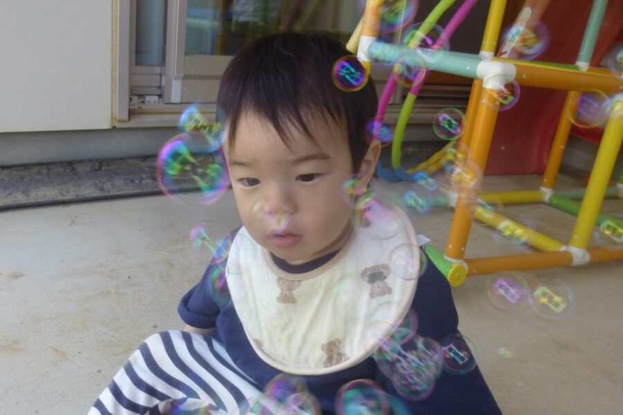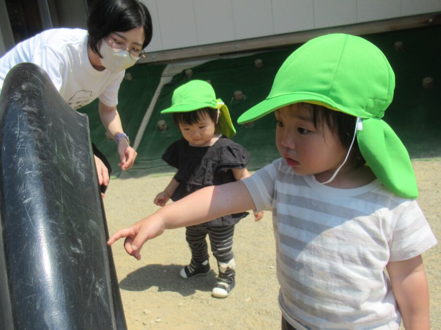 乳児園庭ではしゃぼん玉やコンビカーで遊びました![]()