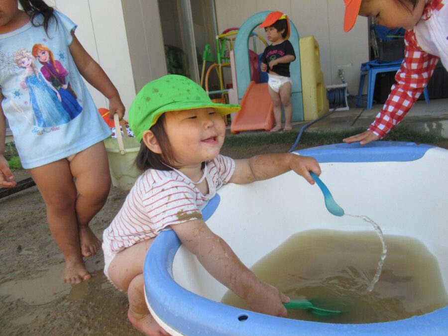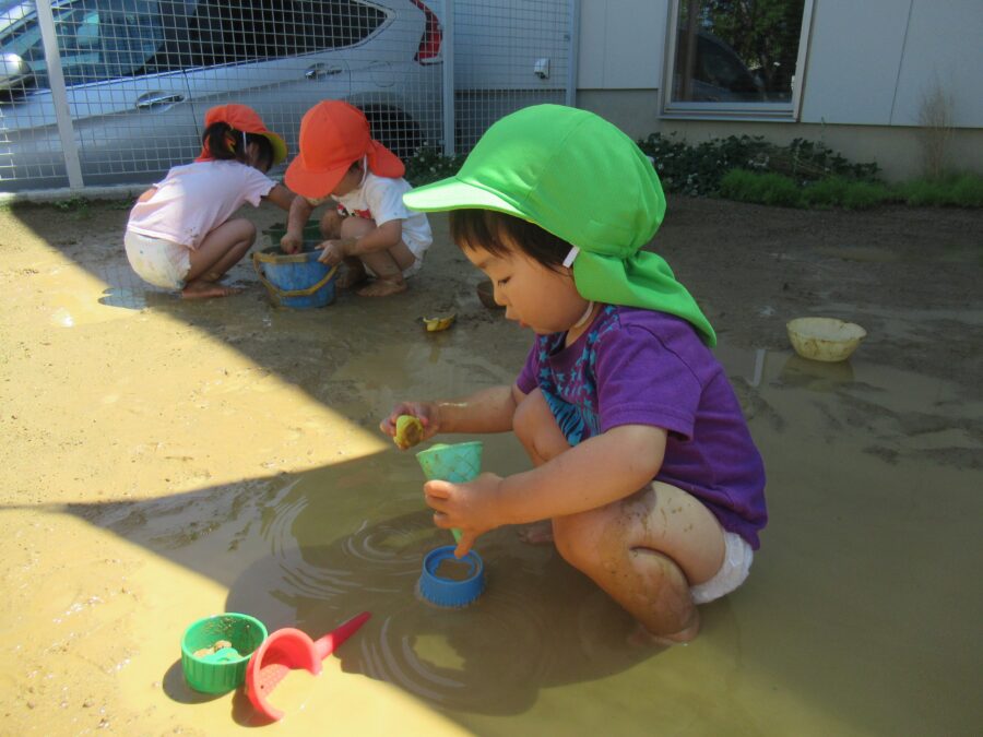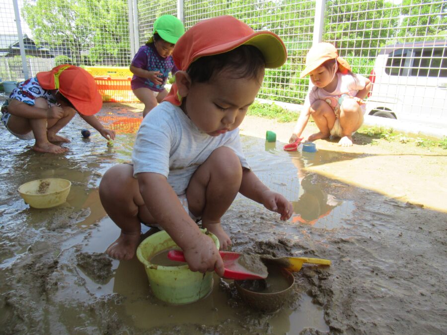 そんな日は泥遊びみんなスコップで泥水をすくうのに夢中ですね