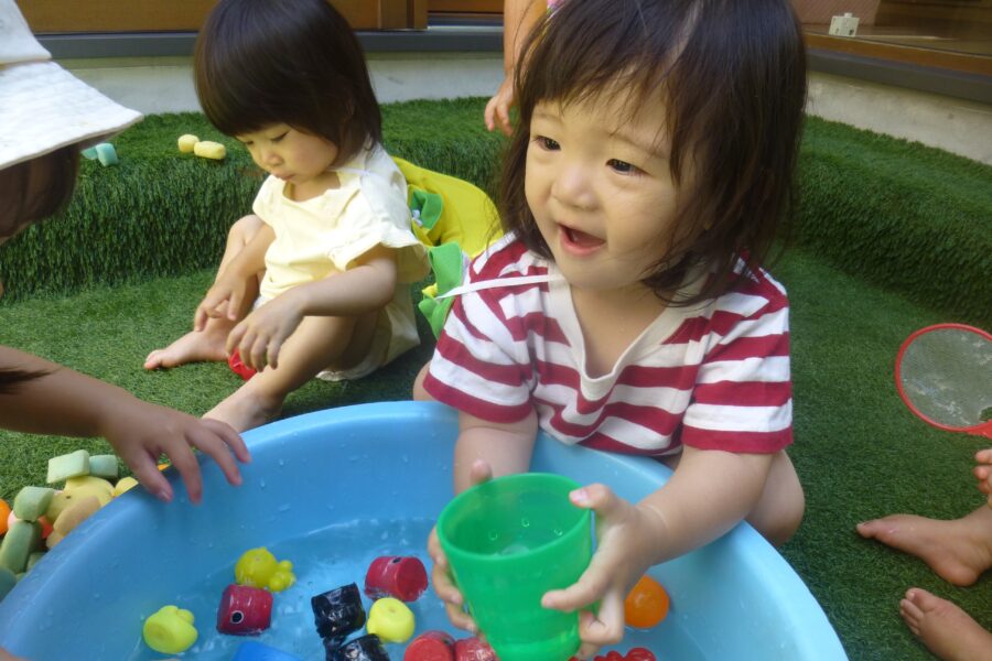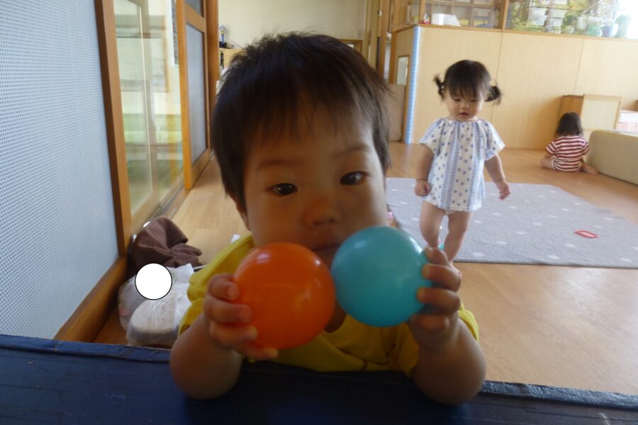 お部屋ではボールや段ボールでできた滑り台で遊びました