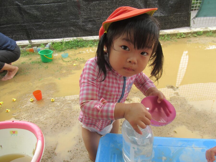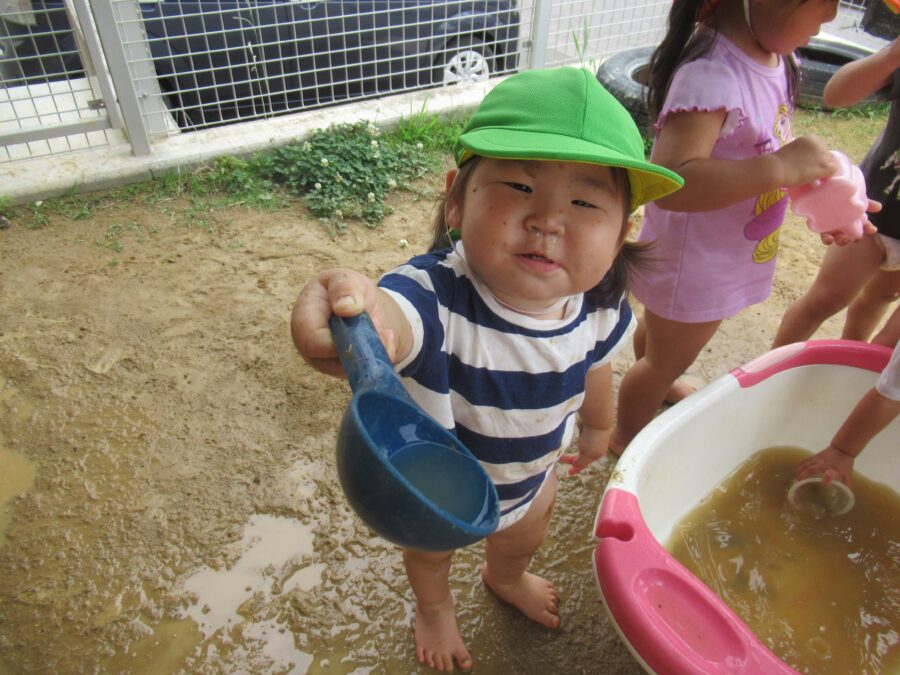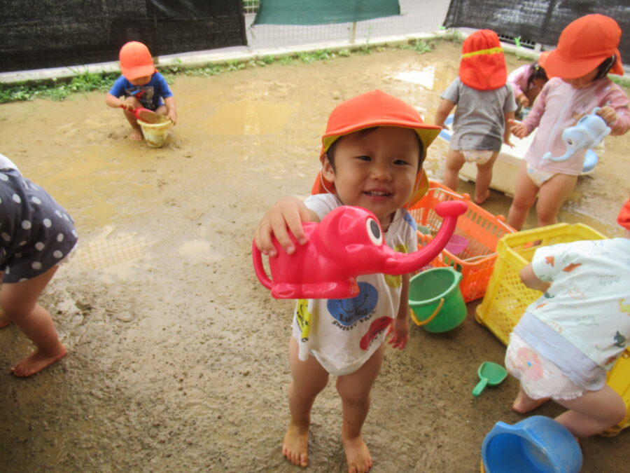 Englishtimeの後は泥遊びや水遊び、お散歩に行きました