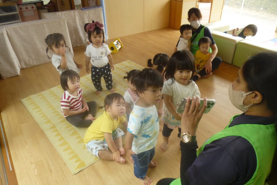 英語の歌に合わせて体を動かして楽しみます