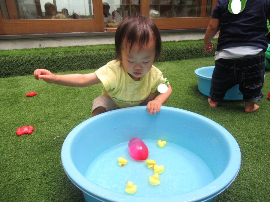 水に浮かんでいるアヒルを触ったりと楽しみました![]()