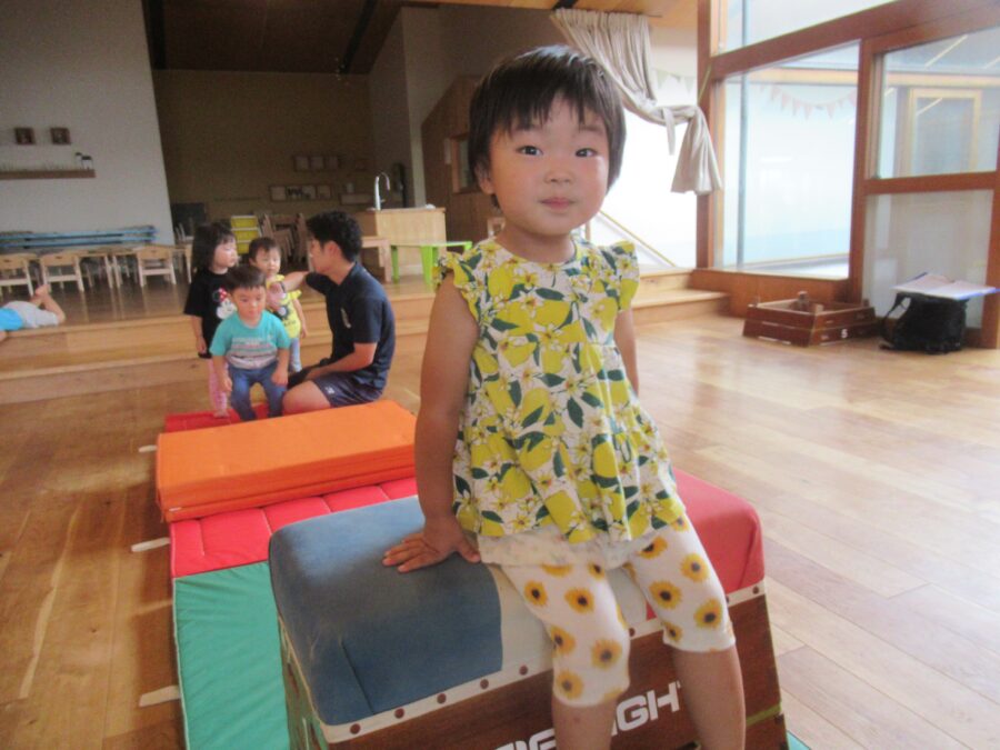 マットでぴょんぴょんとんだり、とび箱にのぼっておりたりしました