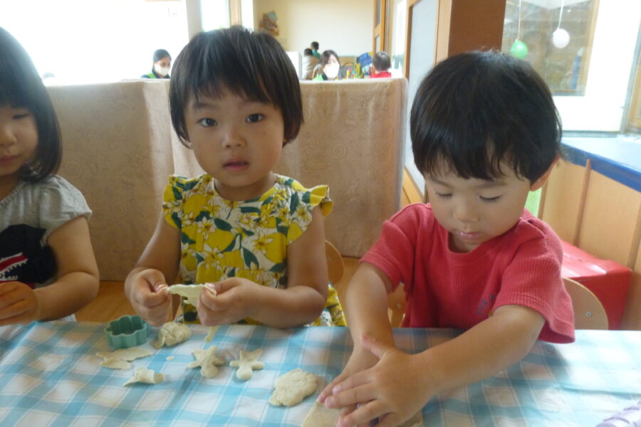 小麦粉粘土の感触を楽しんだり