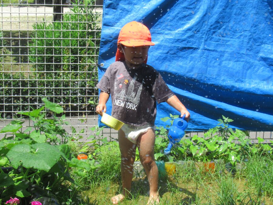 今日は、晴れたので久しぶりの水遊びをしました