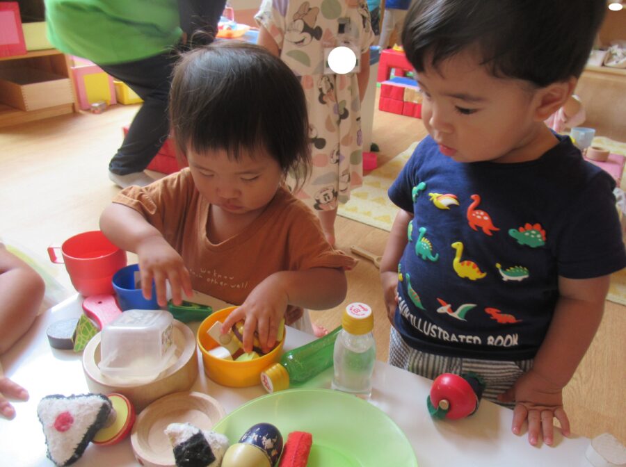 おままごとコーナーではお友だちとやりとりしながら楽しんでいました![]()