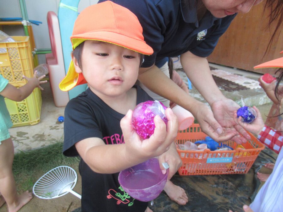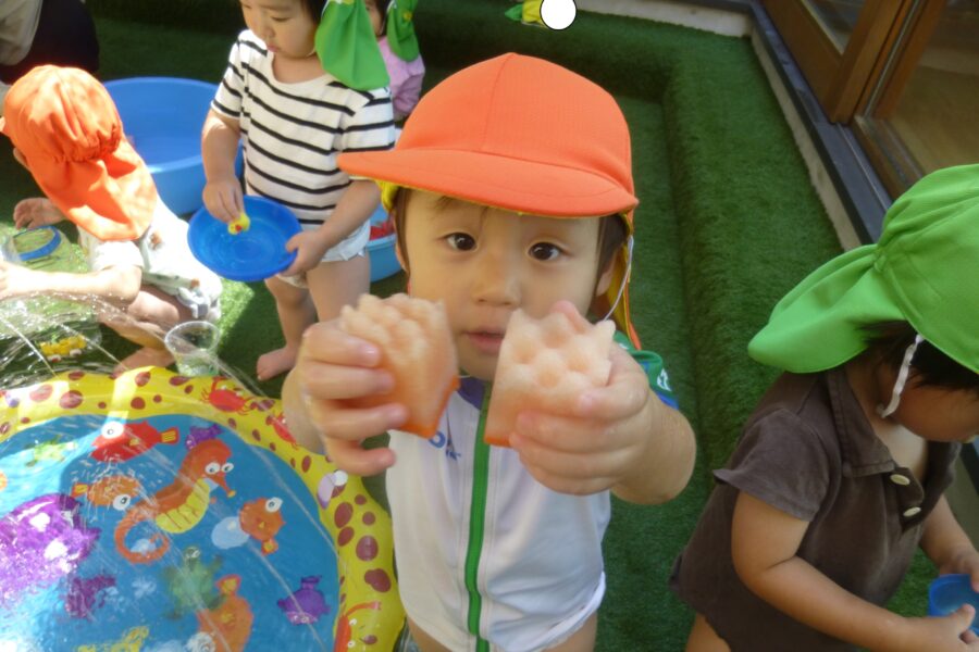 スポンジを持ってる手を緩めると水を含み、強めると水が出てくるので夢中になって楽しんでいましたよ!