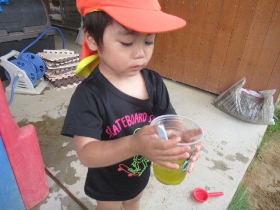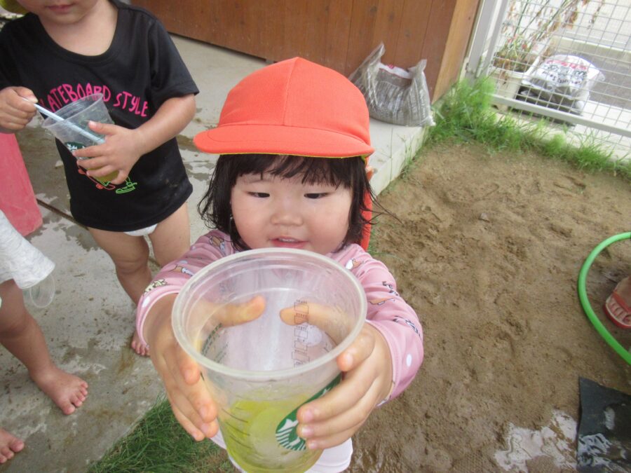 「ちょっとまってくださいね~」とジュースの準備をしています