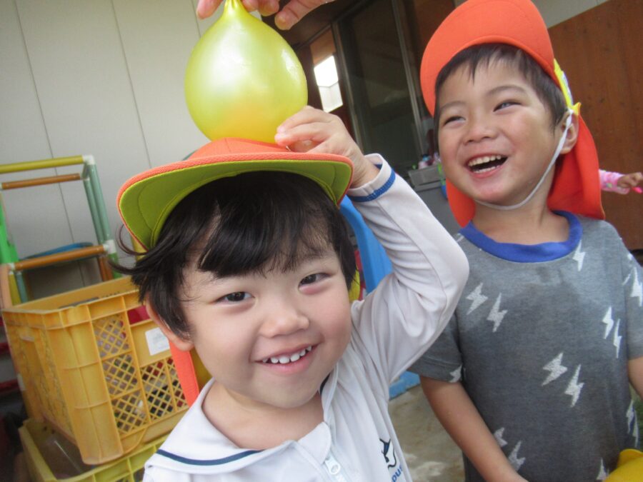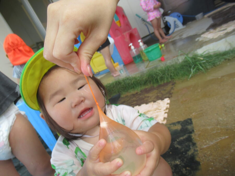 今日は園庭で水風船で遊びました![]()