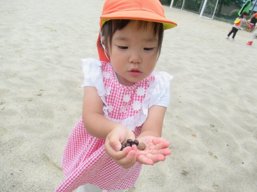 木の実を拾って、保育者に見せてくれました