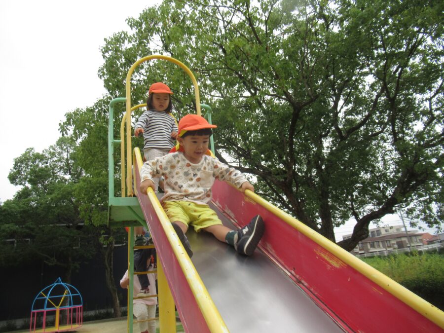 まずは、にこにこさん・すくすくさん、園庭に遊びに行きました![]()