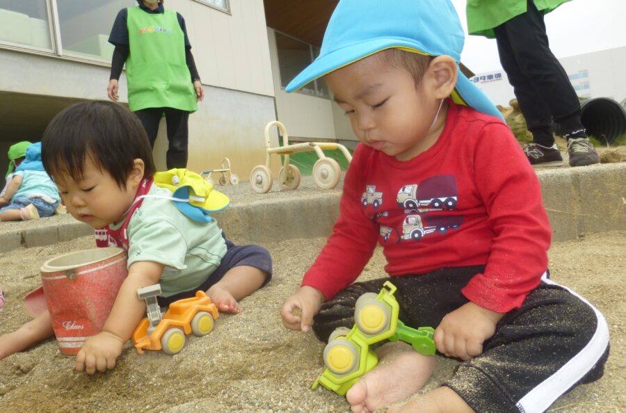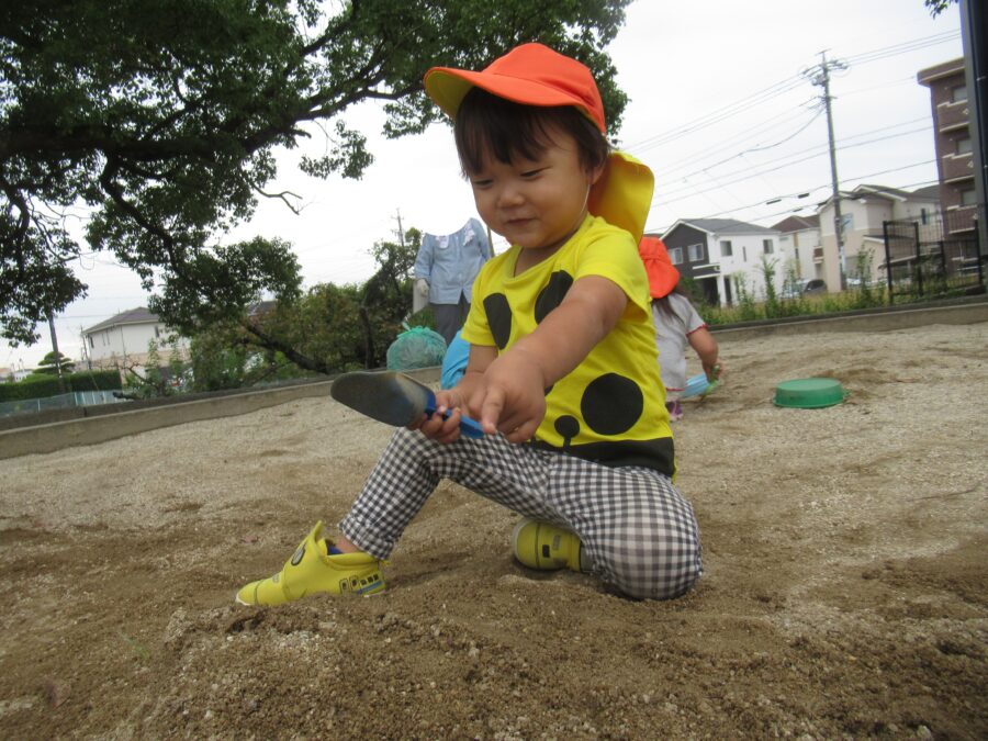 にこにこさんも砂を触ったり、スコップを使ってみたりと砂遊びを楽しんでいました![]()
