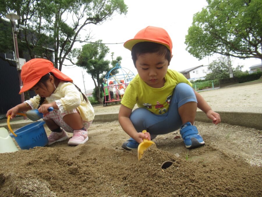 今岡公園でも、砂場遊びは大人気です![]()