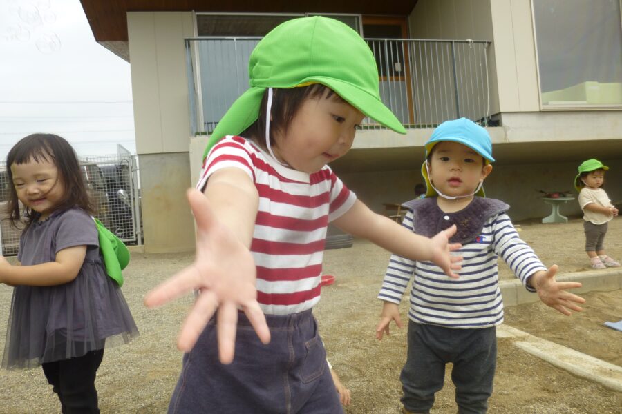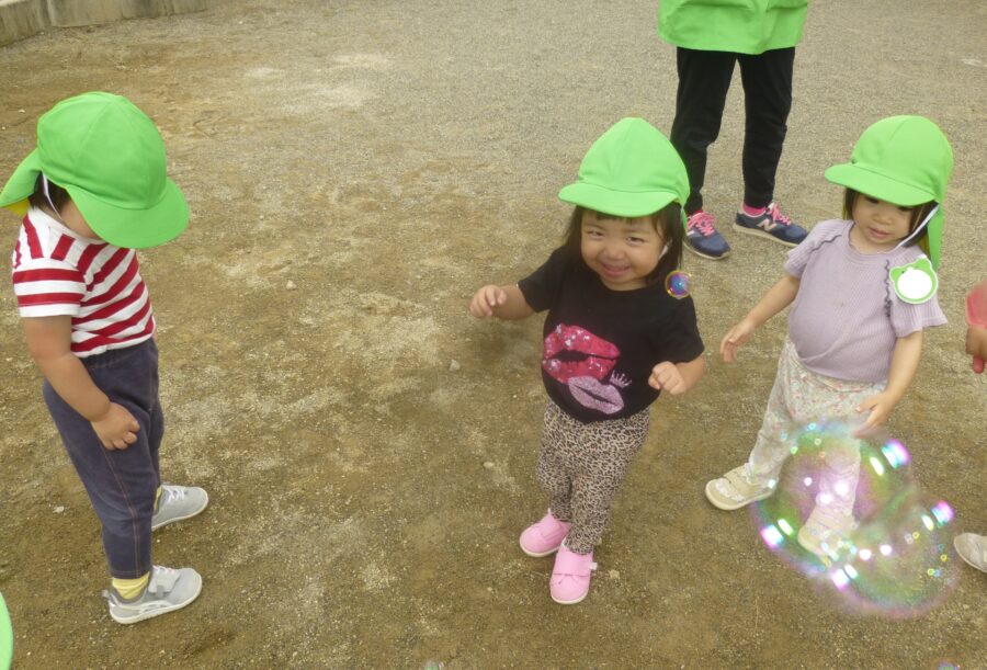 みんな大好きしゃぼん玉では、嬉しそうに追いかけたり、手を叩いたりしていました![]()