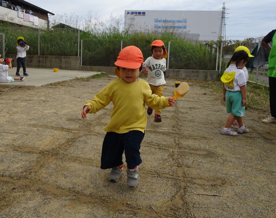 のびのびさんは幼児園庭で遊びました![]()