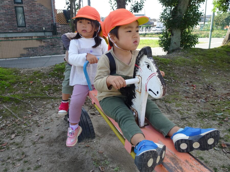 にこにこさん、すくすくさんは幼児園庭で遊びました!