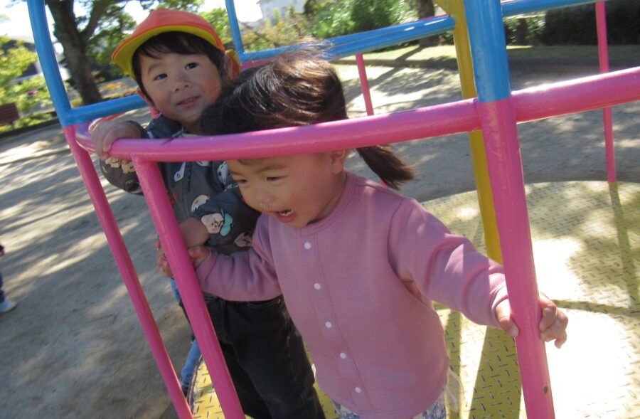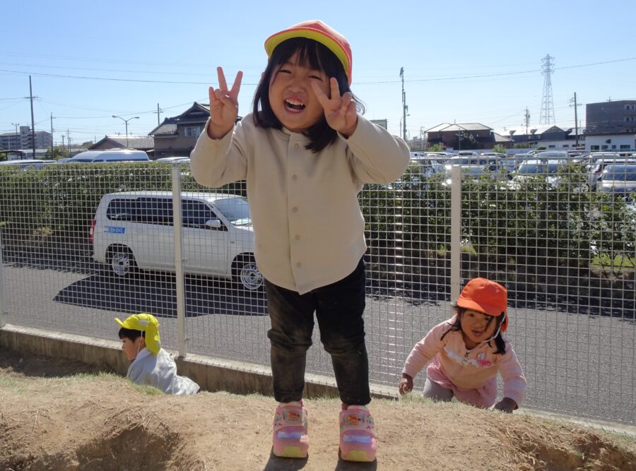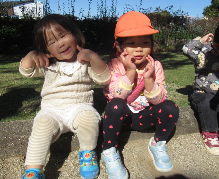 風が冷たくなって11月だと実感する中、子どもたちは元気にお外で遊びました