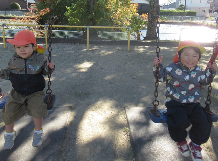 園庭ではにこにこさん、すくすくさんがあそんでいました
