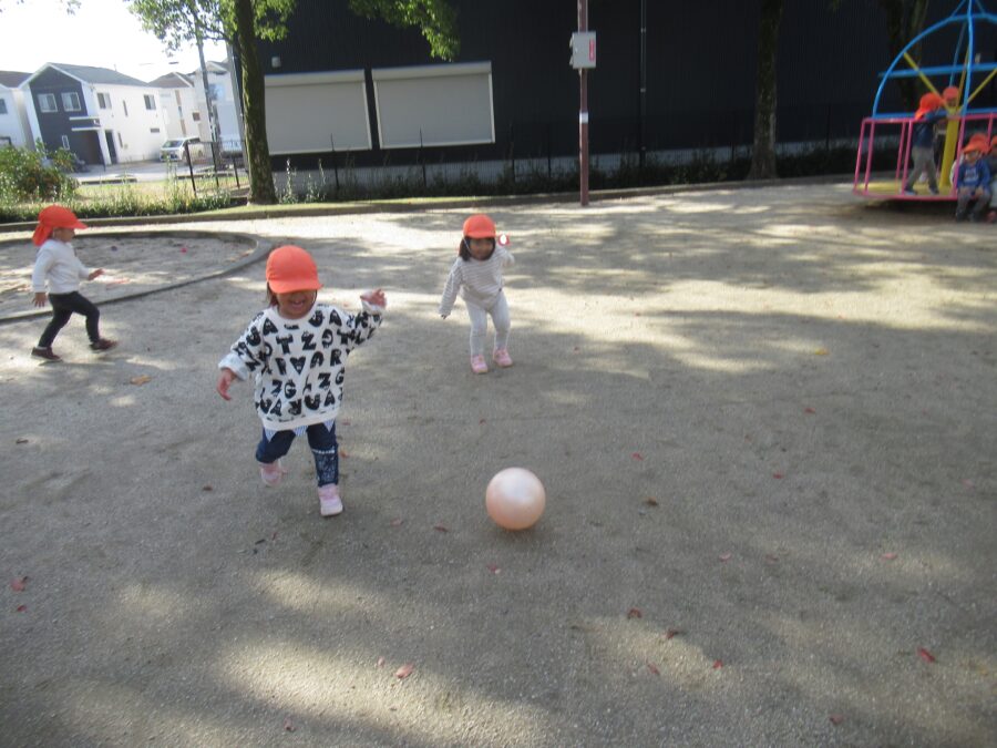 ボールを蹴ったり、追いかけっこをしたり・・・![]()