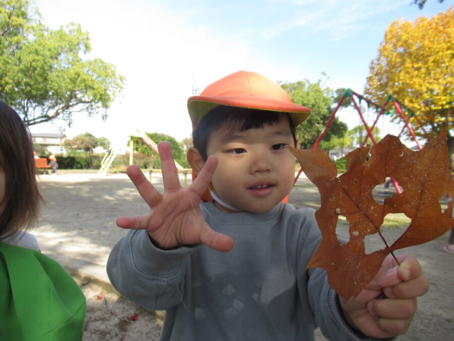 おおきな葉っぱで「おばけだ~ぞ~👻」