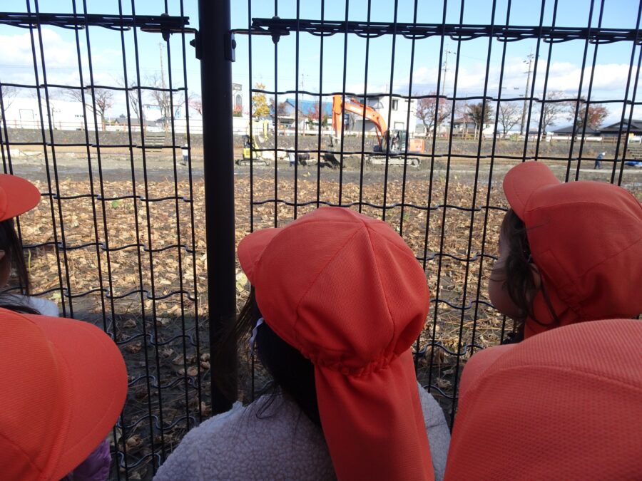 行く途中大きなショベルカーを見ることができ、みんな大喜びです![]()