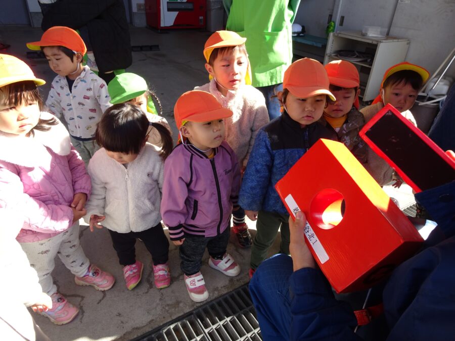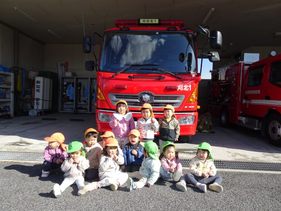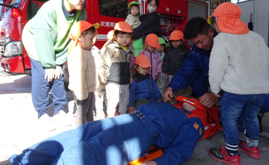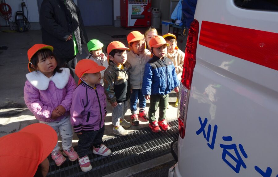 消防士さんが救急車や消防車の説明を丁寧にしてくださり、みんな真剣に聞いていました