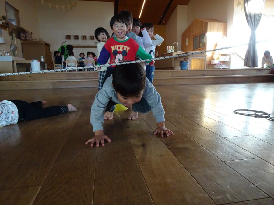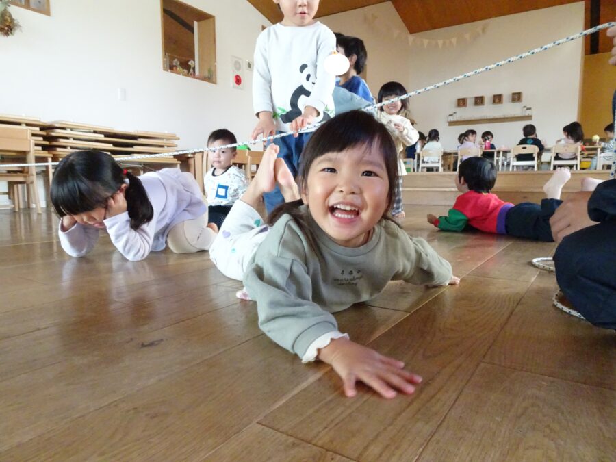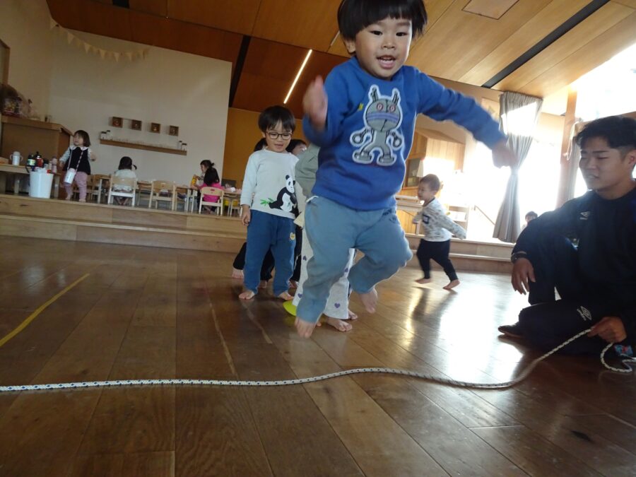 まずはのびのびさんの体操教室がありました!縄のヘビさんの上をジャンプします![]()