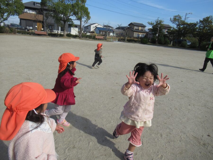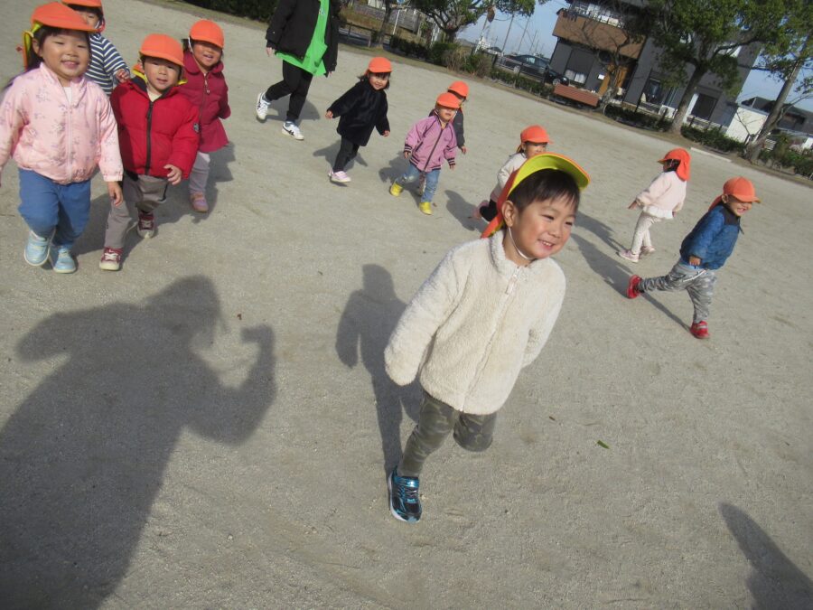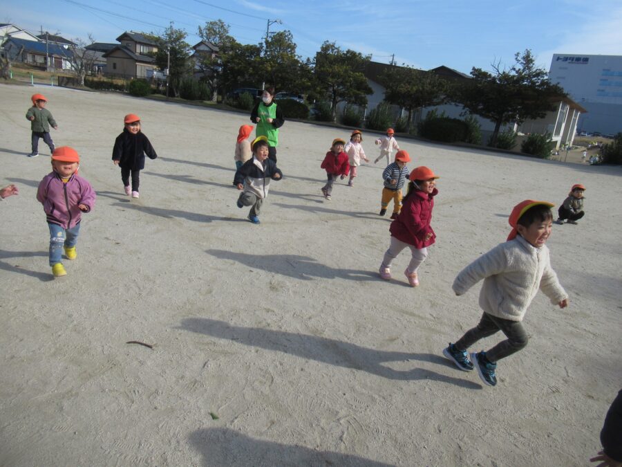 グラウンドに着くと早速追いかけっこをして走り回る子どもたち
