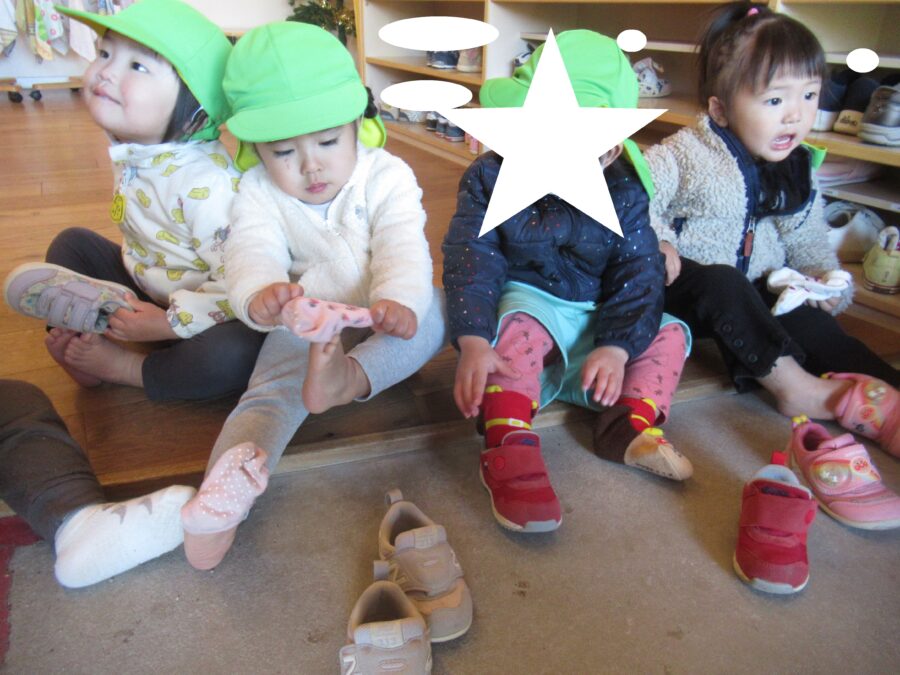 すくすくさんも、自分で靴下や靴を履くのに挑戦![]()