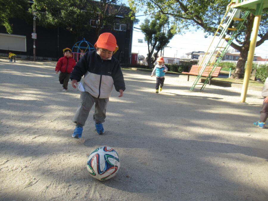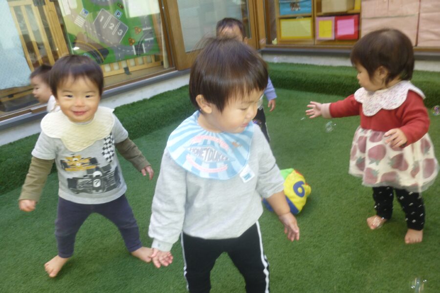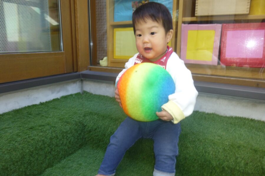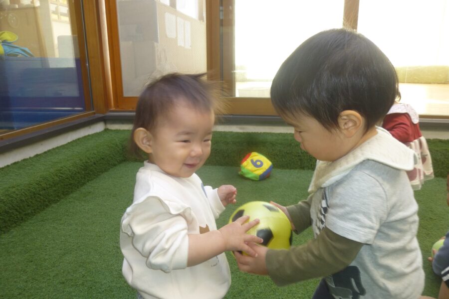 お友だちにボールを「どうぞ」とする姿がありました![]()