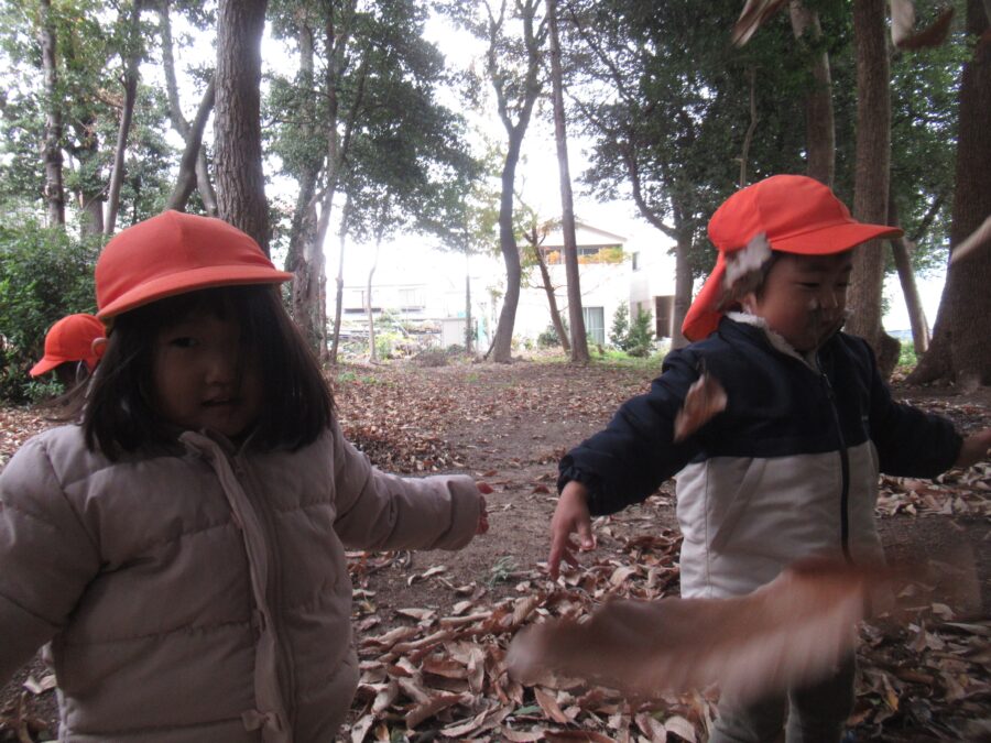 その後は、落ち葉を集めて落ち葉シャワーで遊んだり、