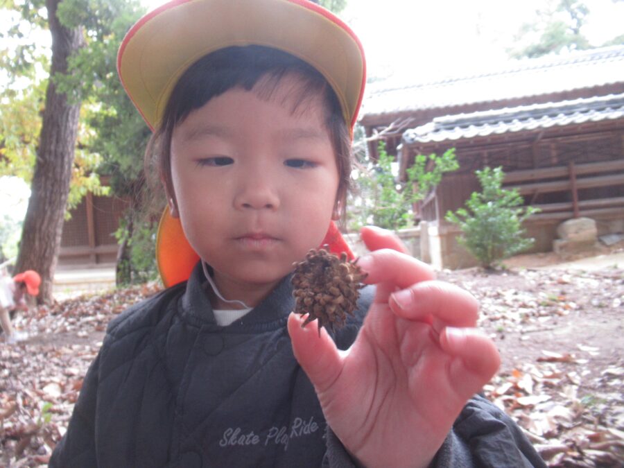 どんぐりやまつぼっくりを集めたりして遊びましたよ