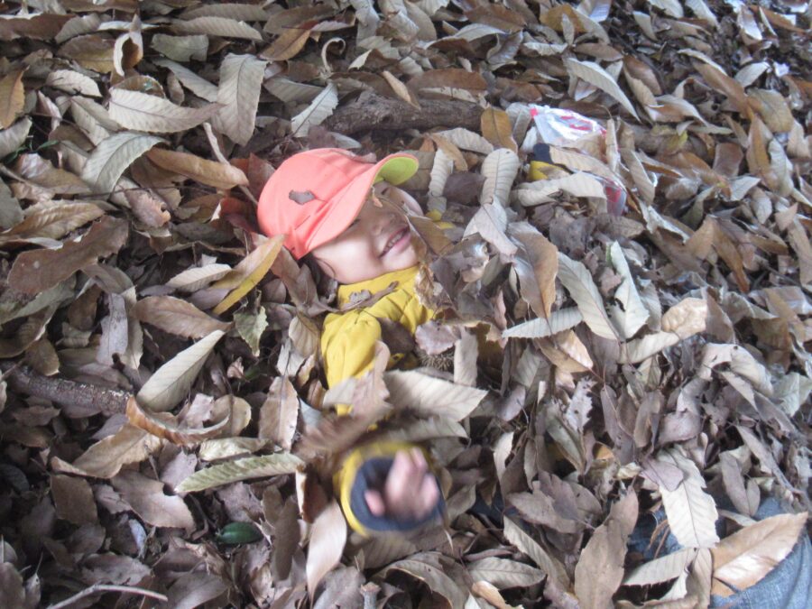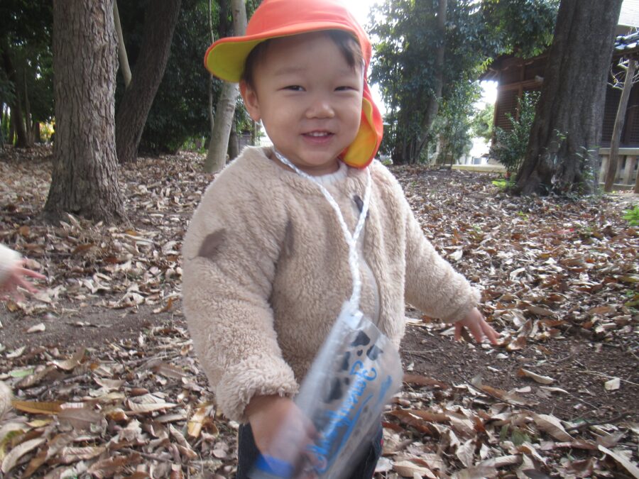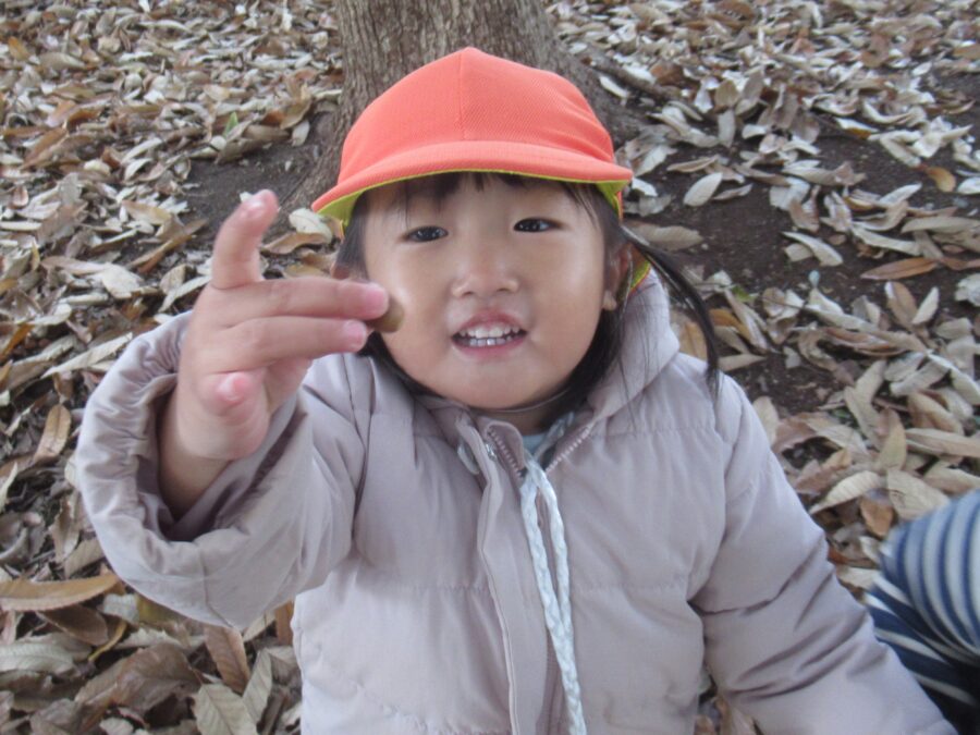 どんぐりもたくさん拾ってお散歩バックに入れていきます