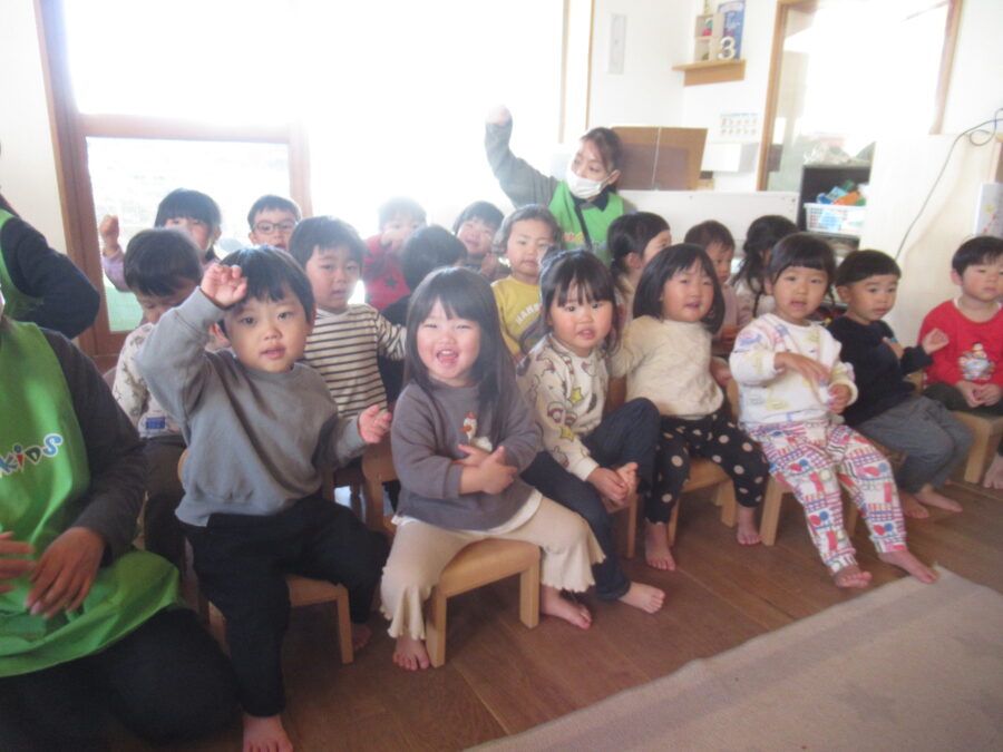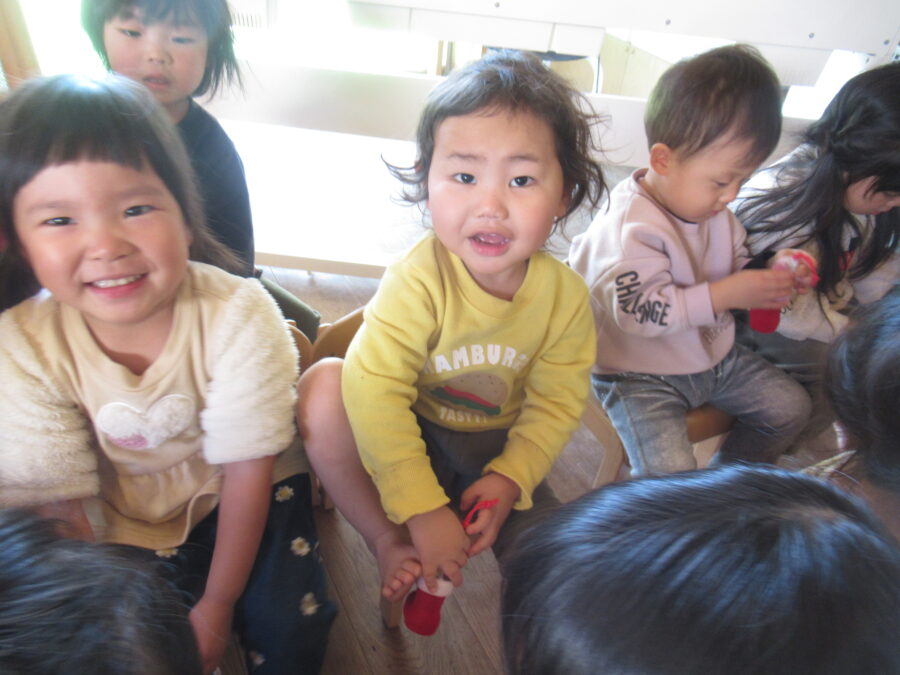 歌を歌ったり、保育者の出し物を見たりみんなとても楽しそう![]()