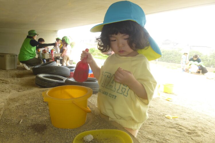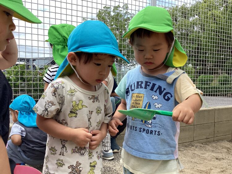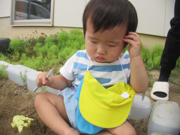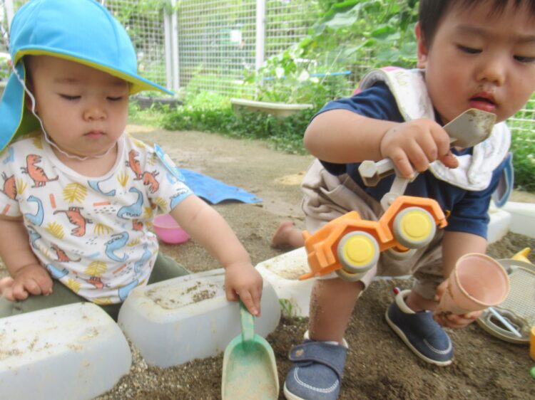 乳児園庭でも遊具やお砂遊びをして楽しんでいました![]()