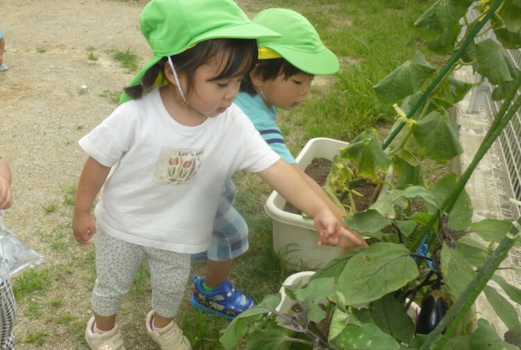 「あ!なすおおきいね!」とお友達と発見していました🍆