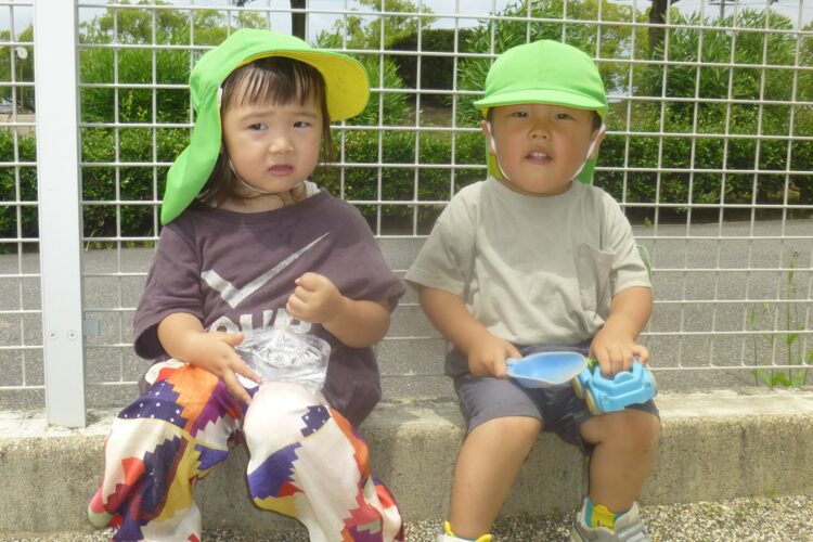 お砂遊びや、虫探し、冷たいお水の入った袋を持って休憩したりして遊びましたよ![]()