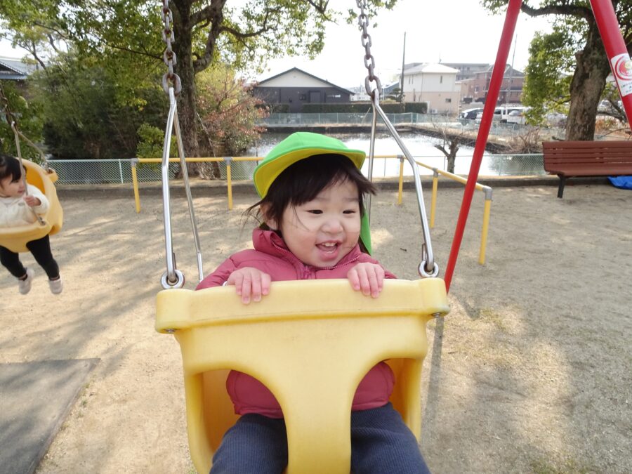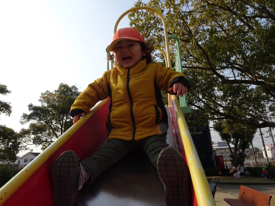 今岡公園では滑り台やブランコは大人気の遊具です![]()