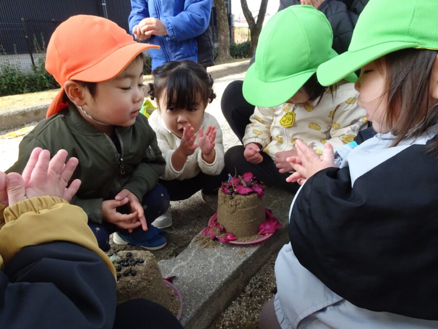 葉っぱや木の実、小さな枝で飾り付けをしています![]()